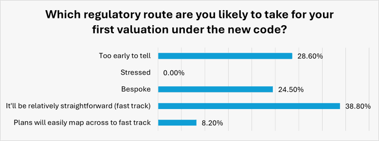 When asking participants which regulatory route they were likely to take for their first valuation under the new code, our webinar poll showed more choosing fast track than bespoke but with many still too early to tell.